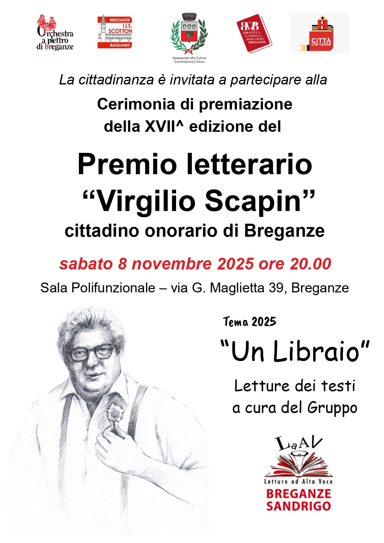 Verrammo premiati i componimenti letterari vincitori relativi al tema dell'anno 2025 "Un librario", e gli elaborati grafici dell'I.S.S. Scotton.